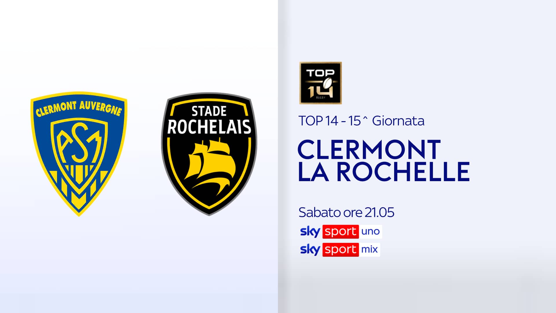 - Ore 21.05: CLERMONT-LA ROCHELLE su Sky Sport Uno e NOW (Malpezzi/De Rossi)