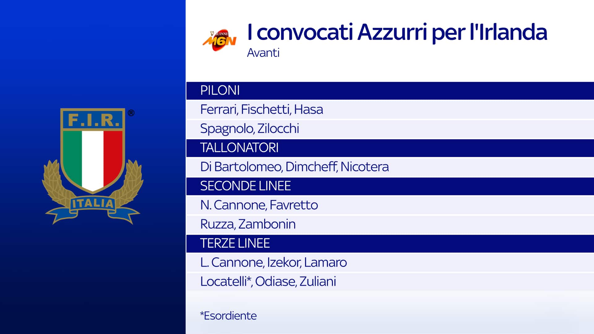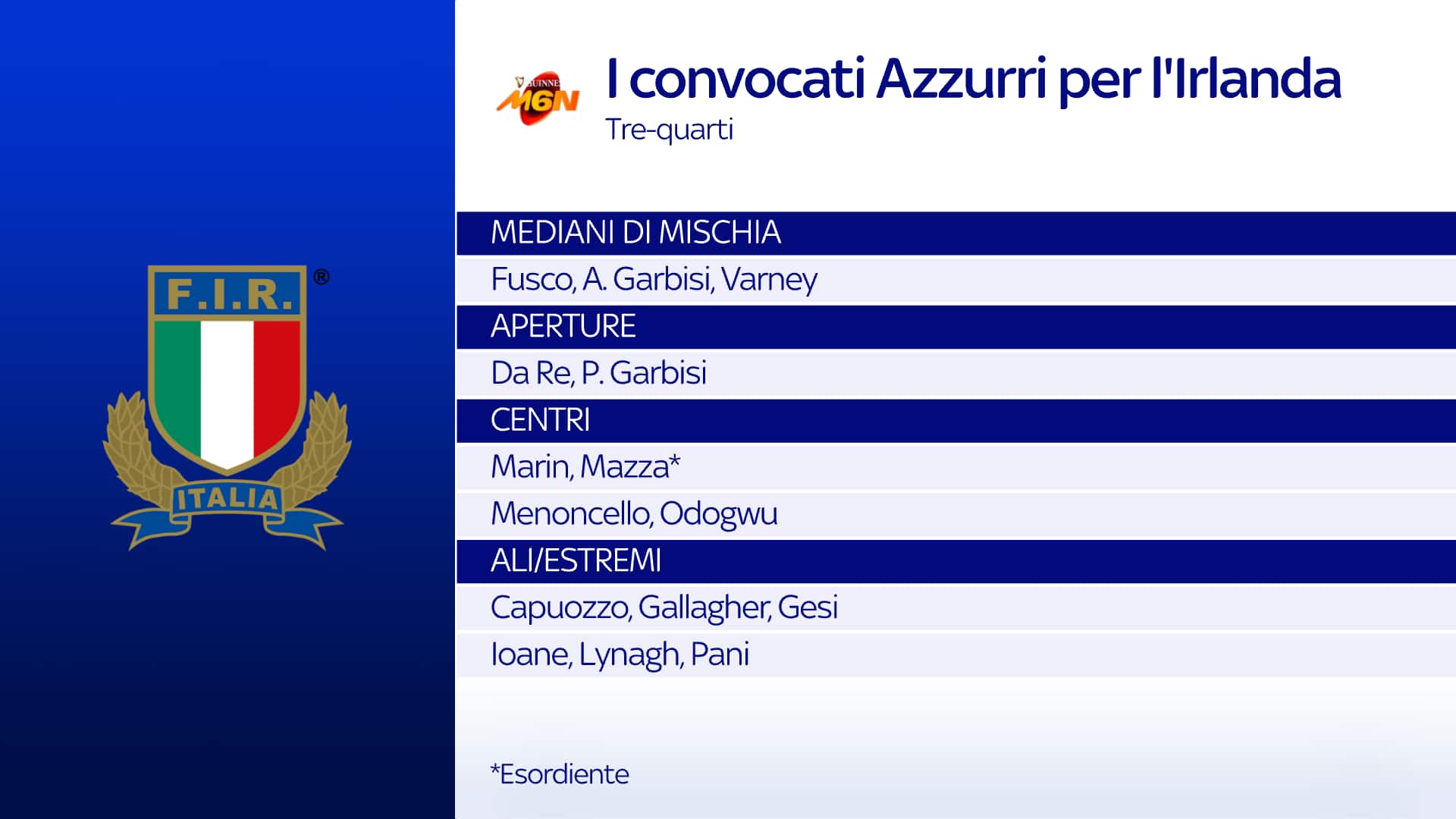 Gli Azzurri convocati per il match con l’Irlanda. Tornano Capuozzo e Gesi, assente Brex