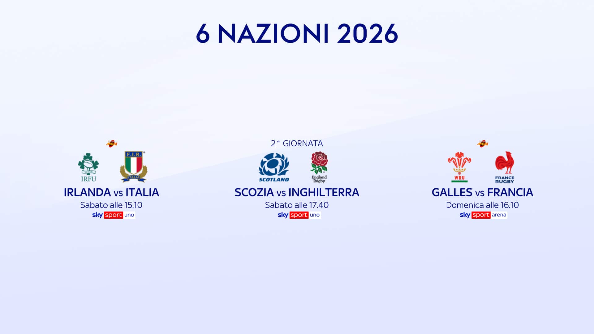 - Irlanda-Italia: Dublino, Aviva Stadium – 14 febbraio ore 14.10 (locali)