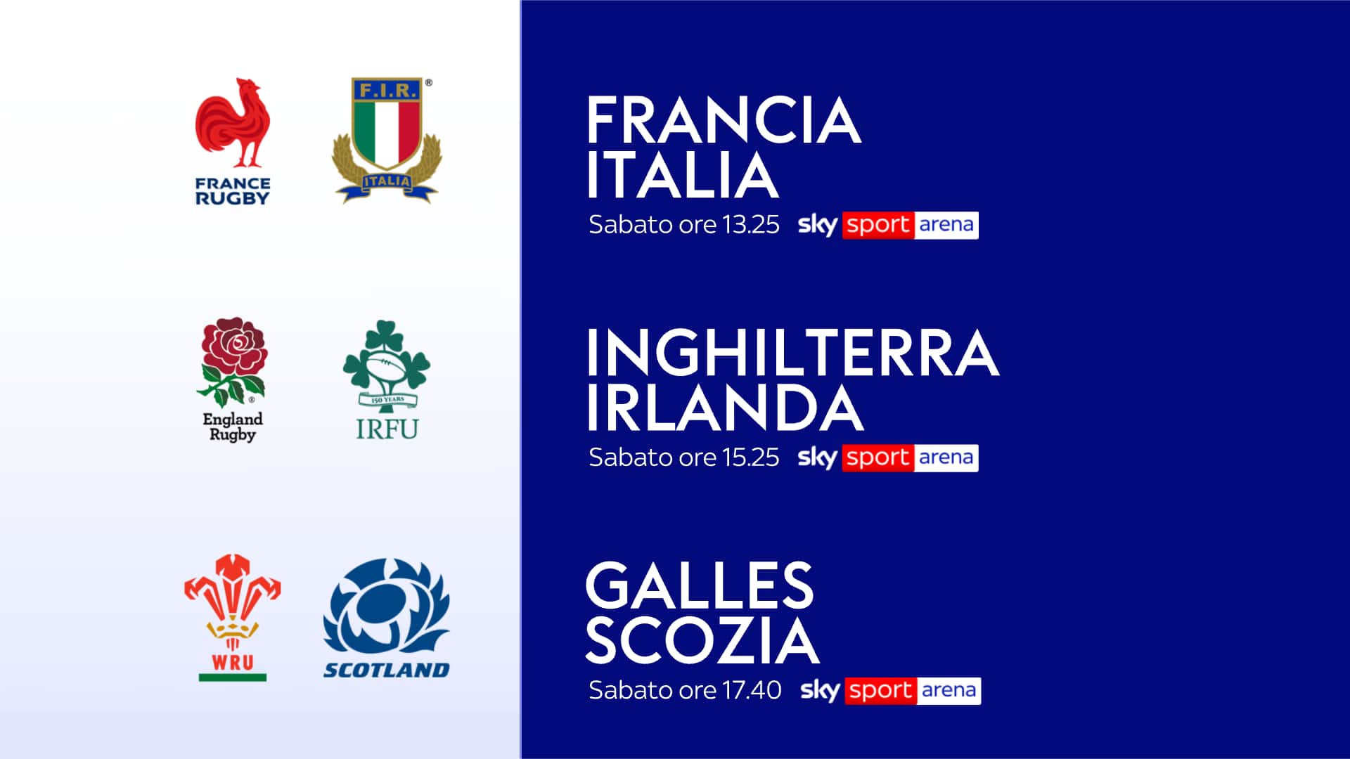 - Alle 17.40: GALLES-SCOZIA su Sky Sport Arena. Telecronaca: Matteo Viscardi