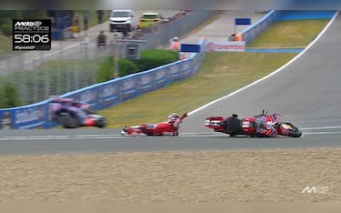 Bagnaia, la caduta nelle pre-qualifiche nel GP Spagna