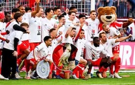 Bayern, pappagallo portafortuna nella festa per la Bundes