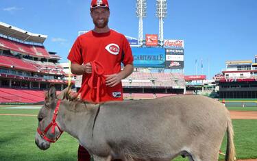 Joey Votto, stella dei Cincinnati Reds, si presenta al Great American Ballpark con un asinello al gunzaglio. E' la promessa fatta al compagno di squadra per la convocazione all'All-Star Game. Il più contento di tutti i figlioletto di Cozart, che ha chiamato il nuovo amico con le orecchie lunghe "Donald", in onore di Paperino
