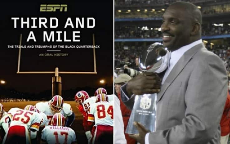 Non una situazione comune solo qualche anno fa, anzi. Già delle università lo sport americano ha sempre storicamente preferito sfruttare gli atleti neri per ruoli più fisici, di atletismo o di velocità, ma in cabina di regia raramente hanno avuto un’opportunità. L’elasticità, l’elevazione e i muscoli sono i punti di forza dell’atleta di colore. Per la cabina di regia più affidabile un bianco. Stereotipi sbagliati, assurdi, ma nei quali hanno creduto in troppi per lungo tempo. Bisogna tornare indietro al Superbowl XXII giocato il 31 gennaio 1988 al Jack Murphy Stadium di San Diego per trovare un QB nero che per la prima volta ha guidato una squadra a sollevare il Vince Lombardi Trophy. Doug Williams quella notte lanciò per 340 yards e 4 touchdown e i suoi Washington Redskins distrussero i Denver Broncos. Williams dopo l’anello e il titolo di MVP di quel Superbowl ha giocato solo altre 2 stagioni e non da protagonista, ma ha successivamente cercato di sfruttare quel momento magico, storico, per far capire che quello di non volere un atleta afroamericano in cabina di regia era un retaggio storico che bisognava superare. Lo ha fatto anche contribuendo a pubblicizzare all’inizio del nuovo millennio, come altri ex giocatori NFL di colore, la pubblicazione di un libro “Third and a Mile” (Terzo e un miglio) dove erano raccolte tante delle ingiustizie che nell’NFL gli atleti di colore hanno dovuto sopportare.