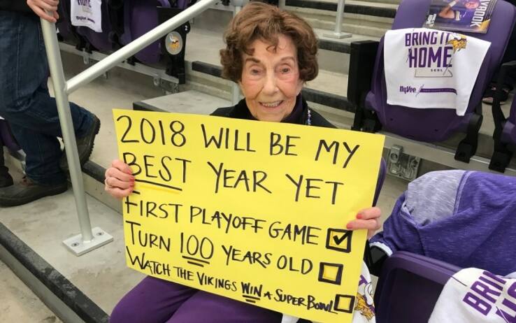 La storia più bella ? Quella di Millie Wall. Arzilla e scatenata tifosa dei Vikings che ha assistito, invitata dalla franchigia che ha risposto ad una lettera della famiglia, al primo match di post-season della sua vita chiacchierando amabilmente anche col Commissioner Roger Godell. Si è presentata allo stadio con la nipote e con due striscioni d’incoraggiamento alla squadra che aveva preparato lei stessa. Quest’anno compirà 100 anni e il regalo speciale…….lo ha già chiesto!