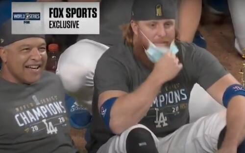 I Los Angeles Dodgers celebrano le World Series dopo 32 anni, ma devono fare i conti con il caso di Justin Turner: sostituito durante gara-6 contro i Rays all'inizio dell'ottavo inning dopo la scoperta della positività al Covid (arrivata a gara in corso), il terza base è poi sceso in campo a festeggiare il titolo con compagni e rispettive famiglie. Ed è stato anche 'pizzicato' con la mascherina abbassata, contravvenendo ai protocolli anticoronavirus