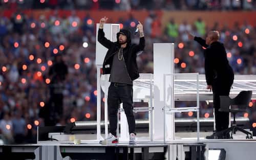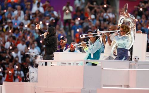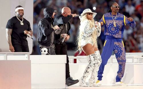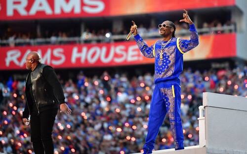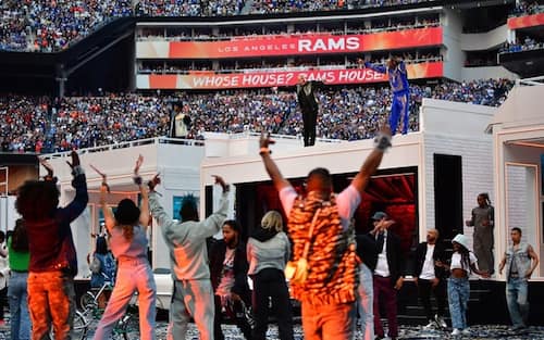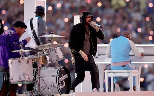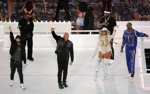 Grande spettacolo nell'intervallo della finale del Super Bowl tra Rams e Cincinnati Bengals allo stadio SoFi di Los Angeles con le superstar dell'hip-hop mondiale: Dr.Dre, Snoop Dogg, Mary J. Blige, Kendrick Lamar, 50 Cent ed Eminem che ha chiuso la performance con un omaggio al quarterback Kaepernick, il primo a inginocchiarsi durante l'esecuzione dell'inno nazionale