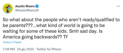 LEBRON JAMES | Anche la superstar dei Lakers, attivo su Twitter, ha condiviso un messaggio della giornalista inglese Derecka Purnell, rafforzando il concetto già espresso dal suo tweet: la decisione della Corte Suprema "riguarda ASSOLUTAMENTE il potere e il controllo" della politica sulle vite umane