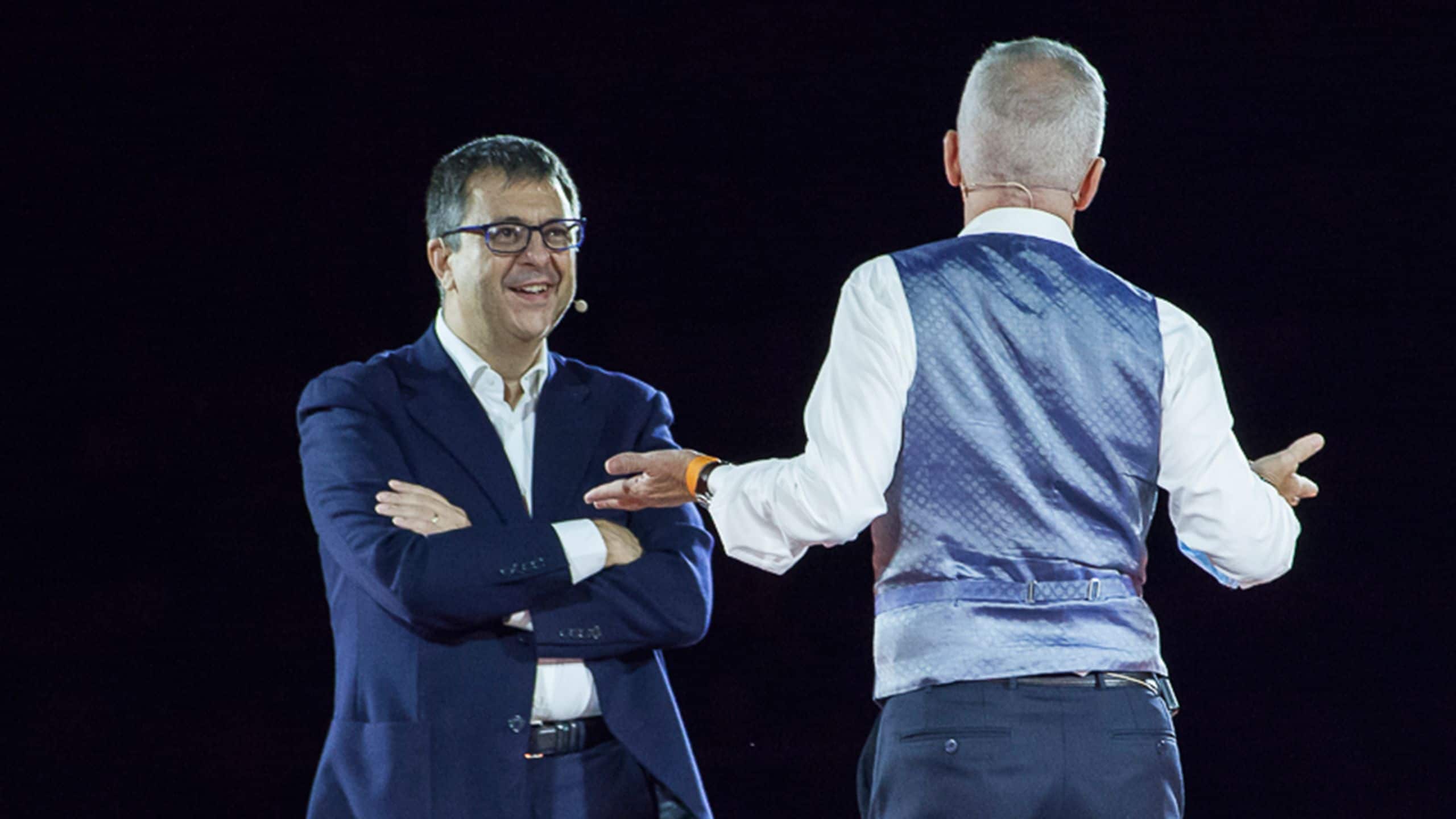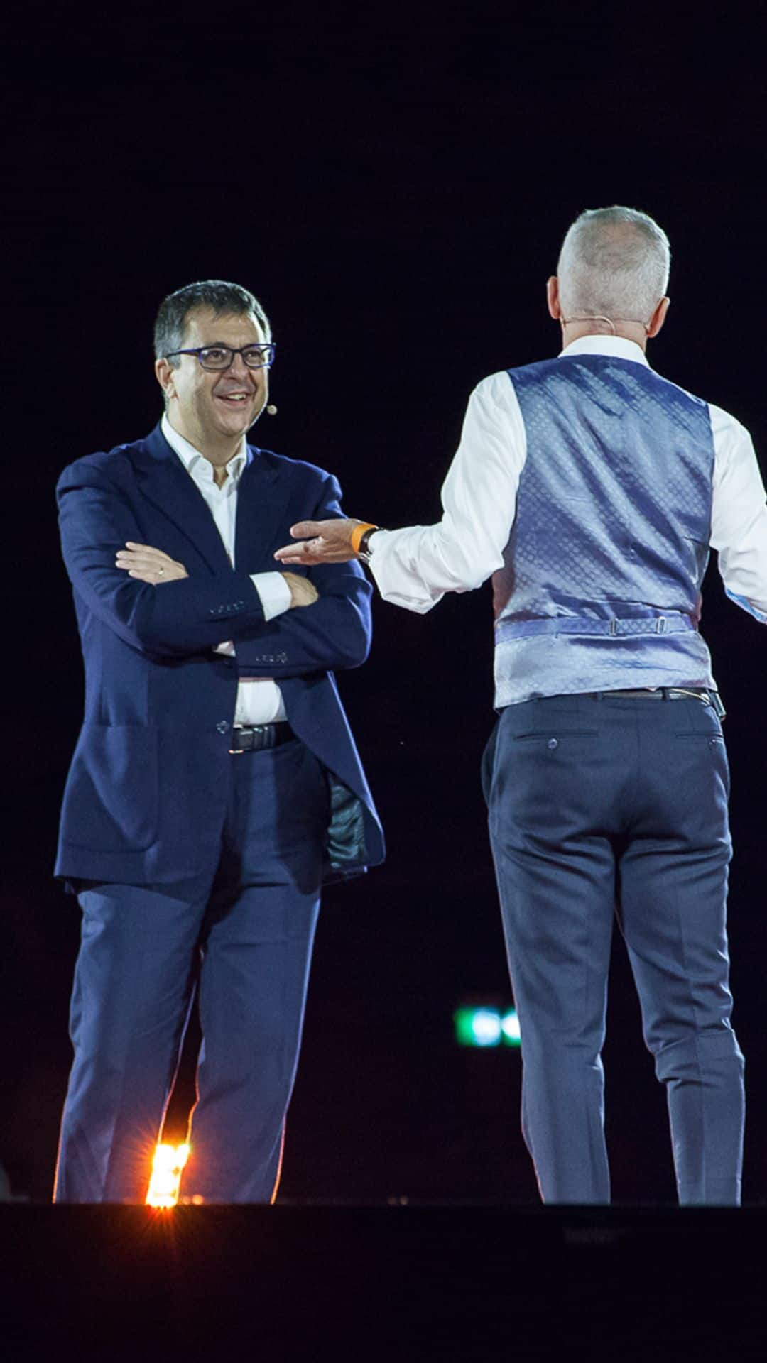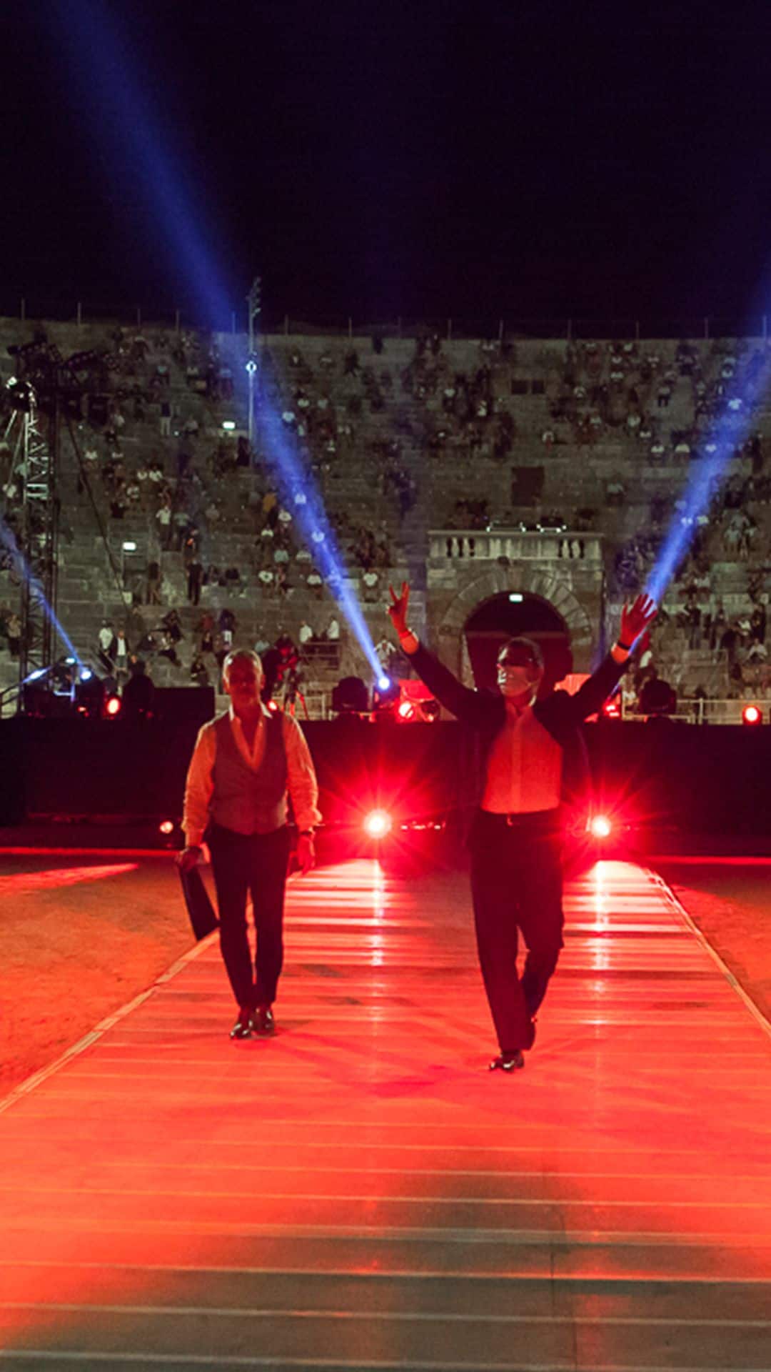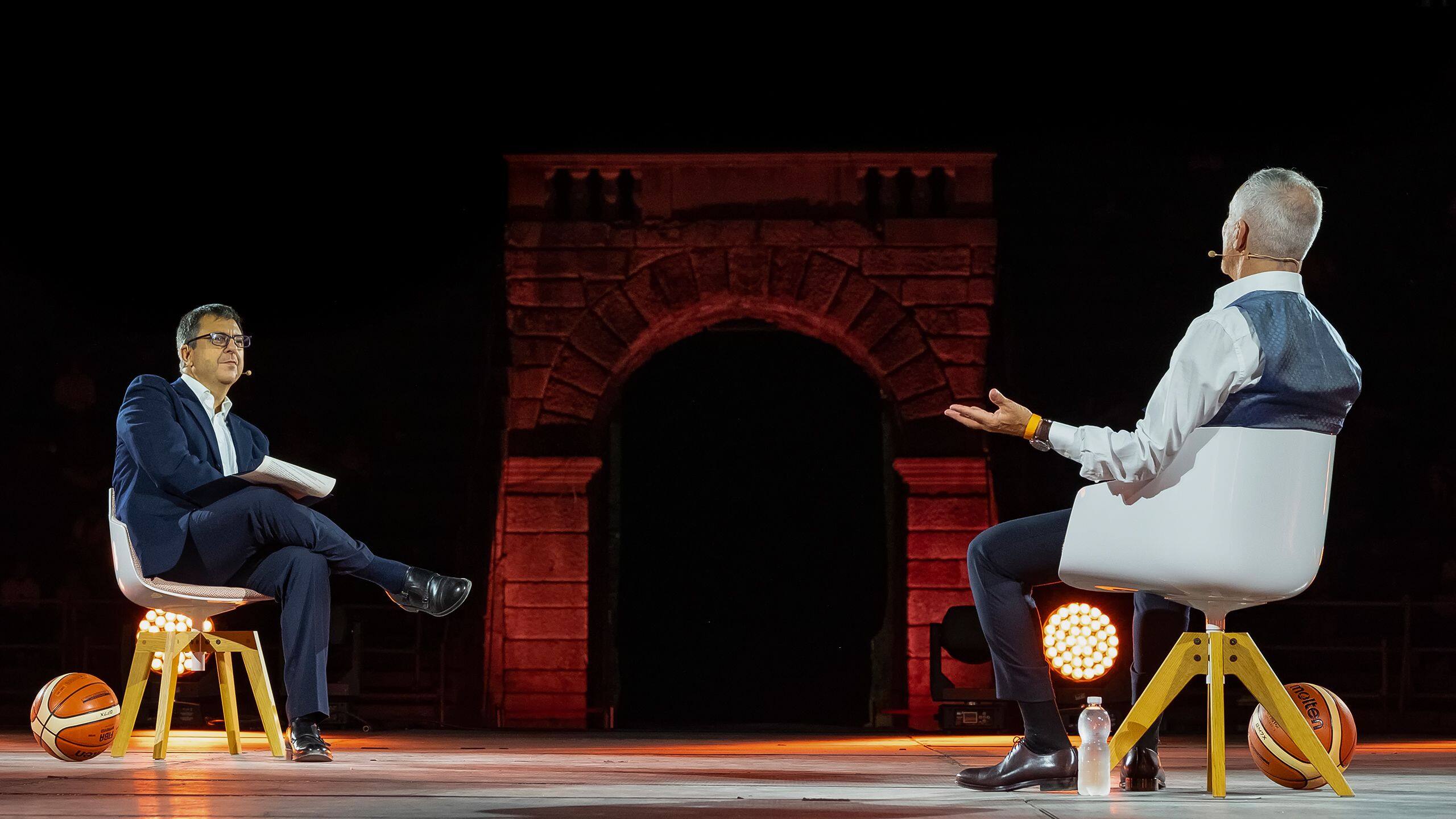Flavio Tranquillo (The Voice) e Federico Buffa (L'Avvocato) all'Arena di Verona, in occasione del Festival della Bellezza,