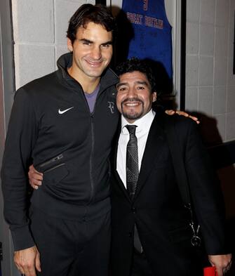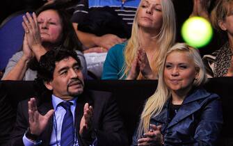 Diego Maradona, ormai un ospite fisso della O2 Arena di Londra. Nel corso del Masters ha applaudito Djokovic e Federer, che ha incontrato al termine del match contro Murray