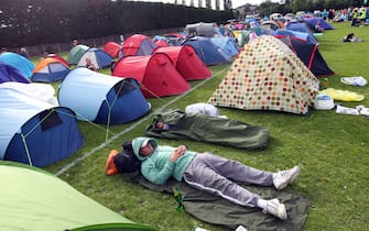 Per acquistare gli ultimi biglietti messi a disposizione dagli organizzatori del torneo di Wimbledon centinaia di tifosi si sono accampati con decine e decine di tende