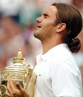 Un giovanissimo Roger Federer, nel 2003, al suo primo successo sull'erba di Wimbledon. In quello che ormai è considerato da molti "il giardino di casa Federer", lo svizzero ha trionfato ben 7 volte: un record condiviso con Sampras e Renshaw -