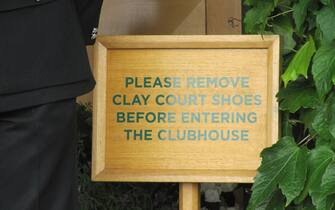 L'avviso all'ingresso della Clubhouse del campo centrale è perentorio: con le scarpette sporche non si entra! -