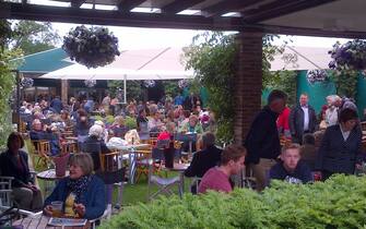 Uno dei tanti ristoranti sparsi per il sito del torneo: se quello sulla terrazza del centrale non è per tutti, in molti altri ci si può rilassare e pranzare vista campi -