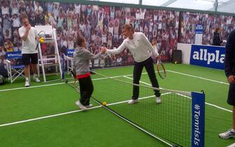 La rumena Simona Halep si congratula con un giovane fan. Sparsi per il torneo vi sono diversi punti dove, 2 o 3 volte al giorno, qualche tennista passa a firmare autografi, scattare foto e palleggiare con i fan -