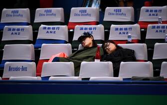 Forse meno agitate dei tifosi precedenti, queste fan cinesi hanno pensato bene di schiacciare un pisolino durante il torneo: non ci è dato sapere chi stesse giocando in quel momento -