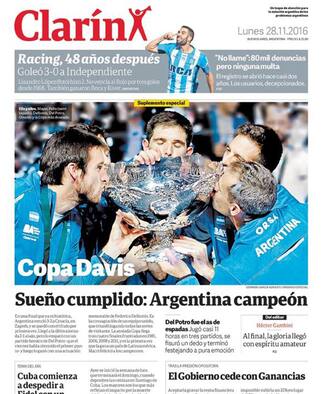 "Il sogno si è avverato, l'Argentina è campione". Così la prima pagina di 'Clarin' di lunedì' 28 novembre celebra il trionfo della Nazionale albiceleste a Zagabria -