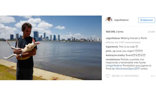 Prima di gettarsi nell'avventura degli Australian Open, Roger aveva anche fatto conoscenza con la fauna locale... (Foto Instagram) -