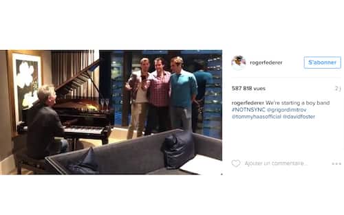 Federer gioca rilassato e senza l'assillo del risultato. Si diverte dentro e fuori dal campo, come dimostra questo post in cui gioca a fare il cantante insieme a Dimitrov e Haas (Foto Instagram) -