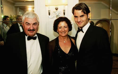 Federer posa con la madre Lynettee, di origini sudafricane e con il padre Robert. La famiglia è un punto cardine per la crescita di Roger, che all'epoca ha appena 24 anni -