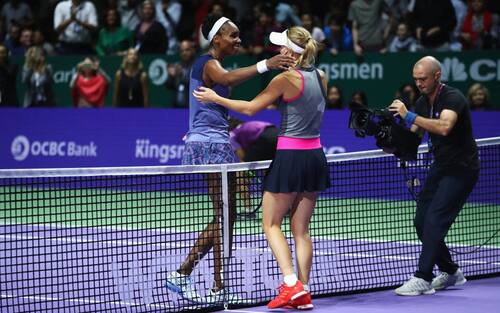 L'abbraccio finale tra le due tenniste, con Venus che tornava alle Finals a 8 anni di distanza dalla finale del 2009 persa contro la sorella Serena, grande amica della Wozniacki