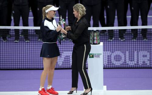 Il momento della consegna del premio, ricevuto dalle mani di Kim Clijsters