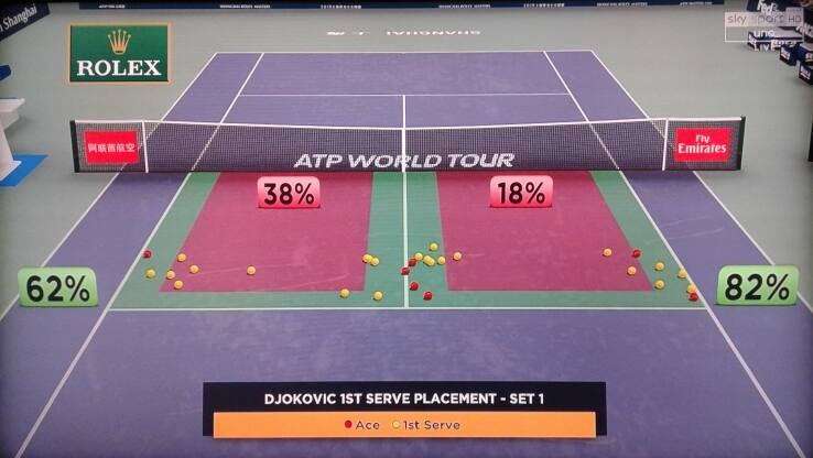 Djokovic serviva così nel primo set contro Anderson allo scorso torneo di Shanghai. Chirurgico da destra, estremamente preciso con tanti ace anche al servizio centrale.