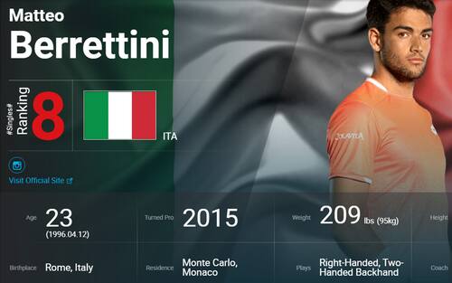 Berrettini entra nella storia a Vienna, dove battendo Rublev ai quarti di finale, conquista matematicamente l'accesso alla Top 10. Matteo è il quarto azzurro nell'Era Open dopo Panatta, Barazzutti e Fabio Fognini, che l'ha preceduto di qualche mese