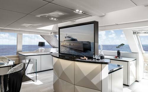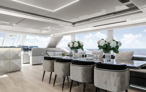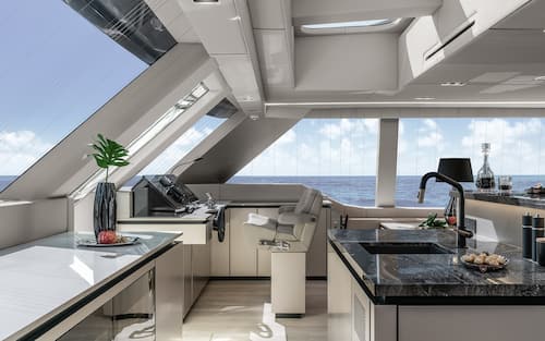 Il salone completamente personalizzabile può anche ospitare una grande cucina a seconda del layout selezionato e una stazione di navigazione interna elevata (foto dal sito Sunreef Yachts).
