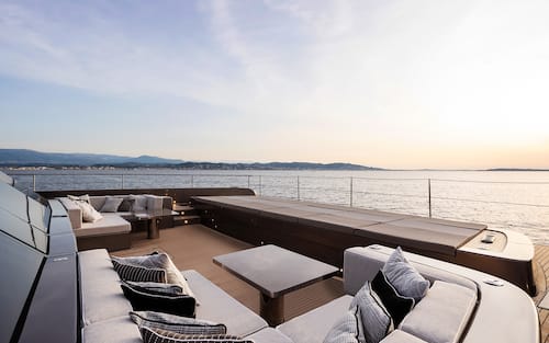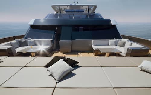 Uno dei bellissimi salotti sul ponte più grande, lungo 12 metri (foto dal sito Sunreef Yachts).