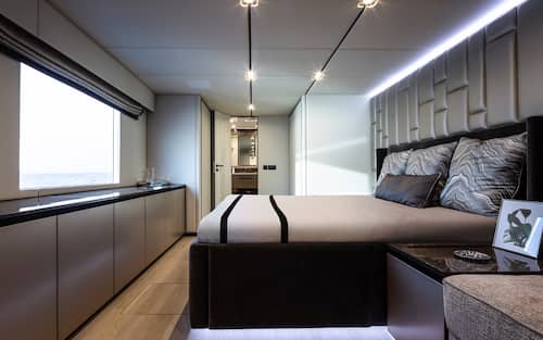 La cabina principale, con il soffitto di vetro, si affaccia direttamente sul mare (foto dal sito Sunreef Yachts).