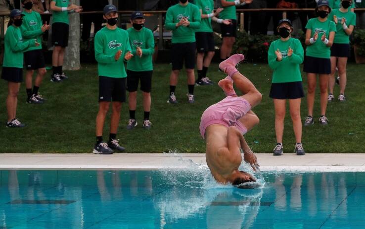 Il campione spagnolo, che si è aggiudicato il torneo catalano per la 12^ volta in carriera, ha celebrato il trionfo tuffandosi nella piscina dell'impianto del Real Club de Tenis, il cui campo centrale gli è stato intitolato. Grazie al successo su Tsitsipas in finale, il maiorchino si è riportato al secondo posto nel ranking mondiale