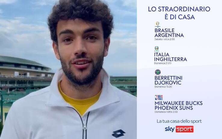 VIDEOMessaggio di Berrettini: "Se fossi in voi domenica accenderei Sky e guarderei la mia partita, poi l'altra finale tra Italia e Inghilterra". Matteo è pronto alla sfida con Djokovic: "Sono fiero di essere tornato più forte dopo gli infortuni. So di poter confermare questo livello". L'ultimo atto di Wimbledon alle 15, alle 21 quello degli Europei, ma live su Sky ci sono anche Copa America e Gara-3 dei Playoff NBA: domenica speciale