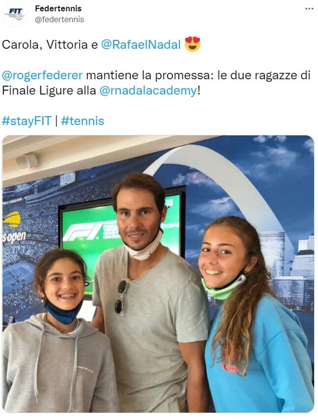 Lo spessore di un campione si misura anche dal valore delle sue parole. E per l’ennesima volta, Roger Federer ha dimostrato di essere un campione dentro e fuori dal campo, mantenendo la parola data. Facciamo un passo indietro per capire meglio la storia. Il 18 aprile del 2020, durante il primo lockdown a causa del coronavirus, due ragazze di Finale Ligure diventano protagoniste del web con un video molto particolare: non potendo uscire di casa per giocare su un campo da tennis, iniziano a palleggiare sui tetti delle rispettive case con buoni risultati. Quelle immagini fanno presto il giro del mondo, diventano una sorta di vittoria dello sport sulla pandemia, un simbolo dello sport che vuole andare avanti nonostante le difficoltà. Federer rimane molto colpito da quel video e promette alle due ragazze un regalo: una settimana in Spagna all’Accademia di Rafael Nadal. Dopo un inevitabile periodo di attesa dovuto alle restrizioni anti-Covid, adesso Federer ha mantenuto la sua promessa. La Federtennis ha pubblicato infatti su Twitter una foto con Carola e Vittoria all’Accademia di Manacor, proprio insieme a Nadal in persona.