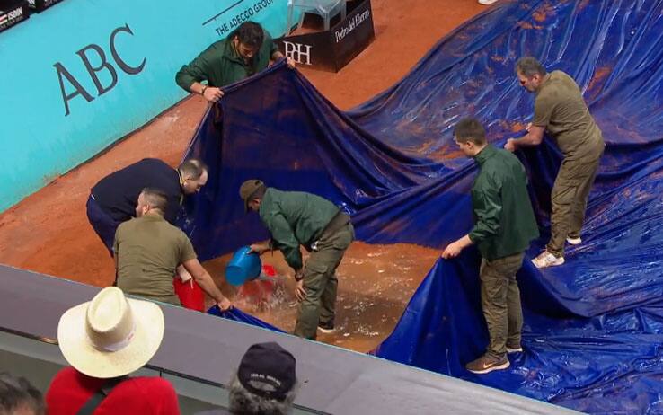 Madrid Open, secchi per svuotare il campo dopo la grandinata. VIDEO