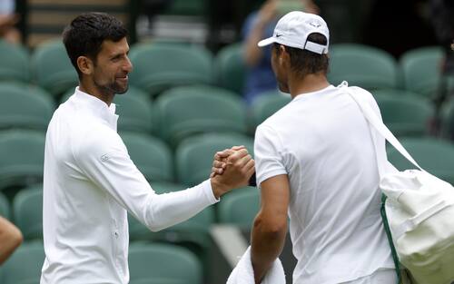 Il saluto di Nole con Rafa Nadal: 42 Slam in due...