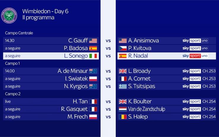 - ore 14: "Studio Wimbledon”, Sky Sport 24 e Sky Sport Uno