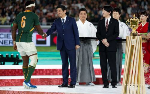 - Da settembre a novembre 2019, il Giappone ospita la Coppa del Mondo di rugby. La prima volta in cui la manifestazione viene organizzata da una federazione asiatica. A vincere la competizione fu il Sudafrica, in finale contro l’Inghilterra. E a premiare i campioni fu proprio l'allora primo ministro Shinzo Abe