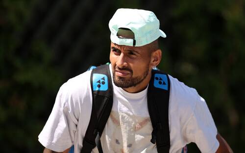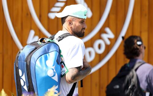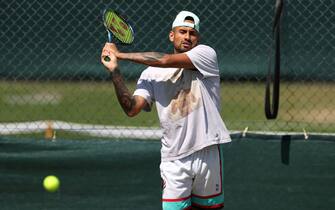 Nick si è presentato sui campi d'allenamento dell'All England Club con una tenuta davvero particolare: cappellino appoggiato in testa e una t-shirt piuttosto insolita...