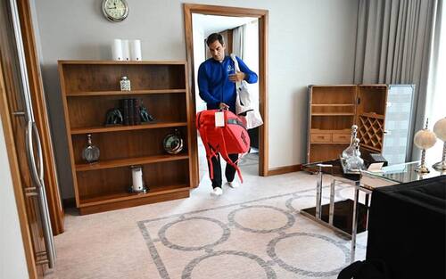 - Immortalato dalle telecamere di Eurosport, Federer sbriga gli ultimi preparativi prima del match. E' l'ultima volta della sua carriera