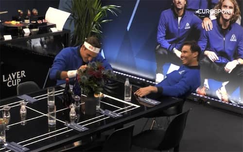 - Qualche ora dopo la cerimonia, diventa virale una foto di Federer e Nadal che si danno la mano per farsi forza, nel momento di massima commozione. Un gesto semplice che raccoglie 18 anni di amicizia, lealtà e sana rivalità