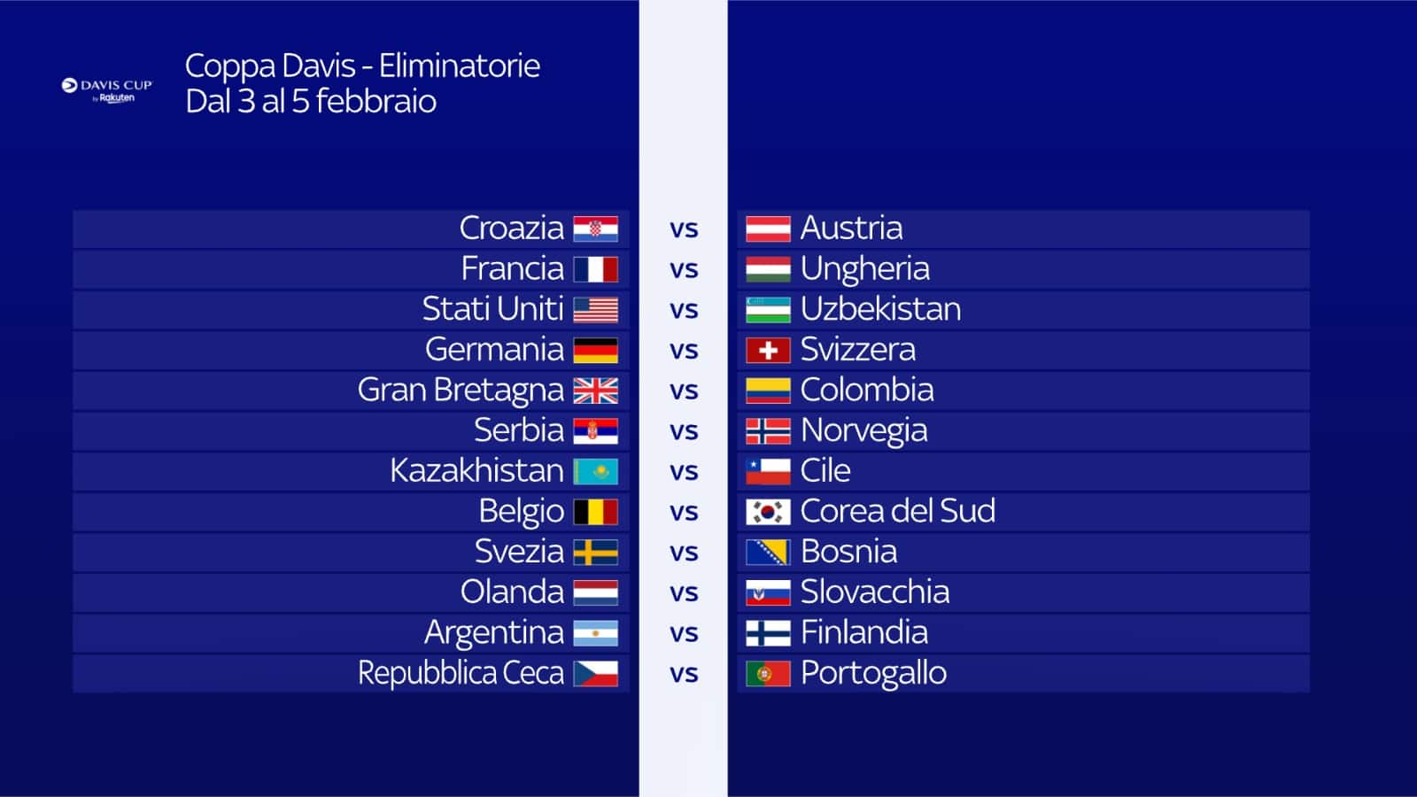 - Sabato 4 febbraio - dalle ore 13 Germania-Svizzera e Croazia-Austria su Sky Sport Tennis e NOW