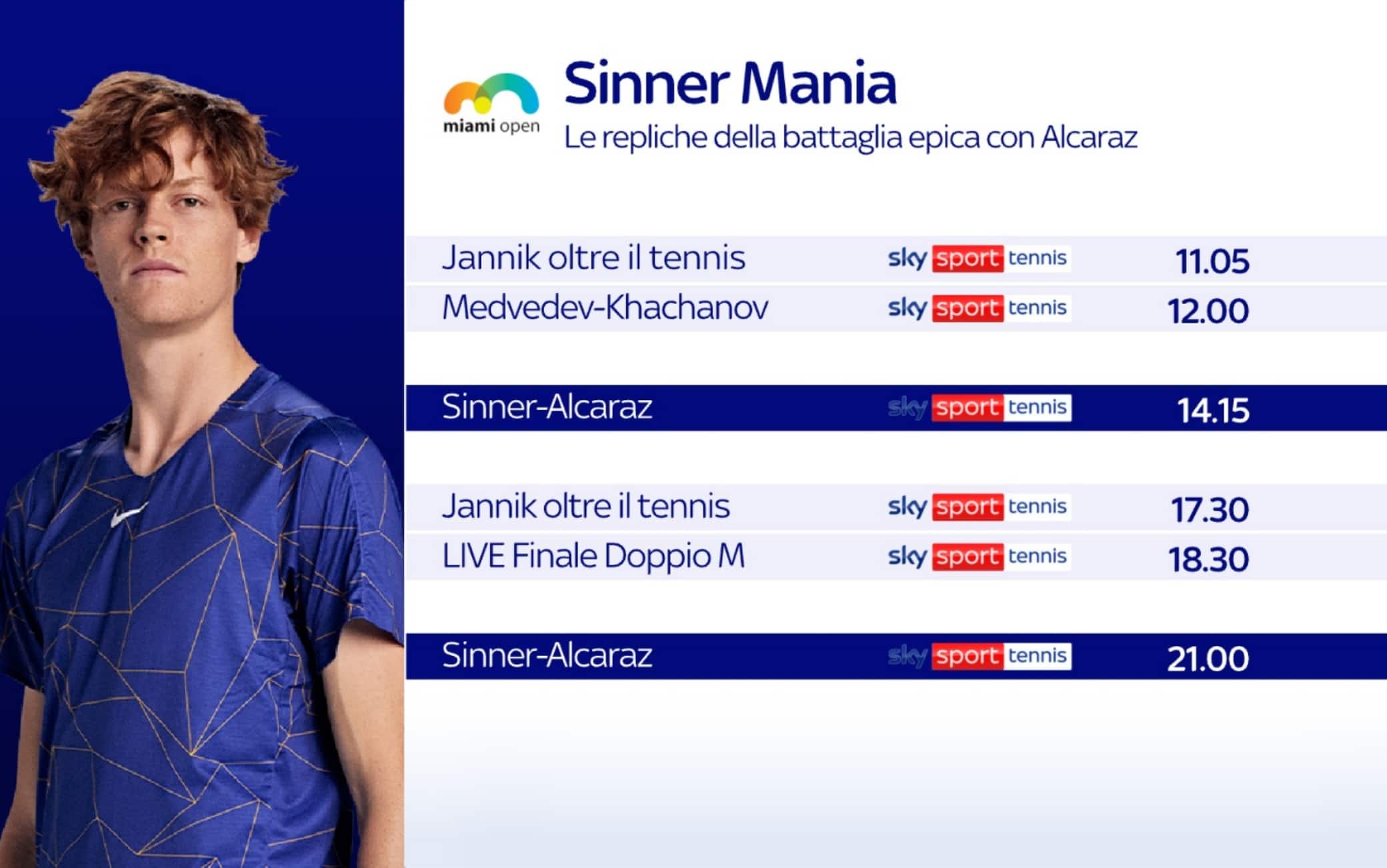 videoSullo 0-15 al settimo game del primo set tra Sinner e Alcaraz va in scena uno dei punti più spettacolari visti finora in questa stagione. L'italiano e lo spagnolo hanno dato vita a uno scambio semplicemente irreale: alla fine Sinner piazza il rovescio vincente scatenando l'ovazione del pubblico per entrambi i protagonisti. La finale domenica 2 aprile alle 19 su Sky Sport Tennis, in streaming su Now e su Sky Sport Uno al termine della MotoGP