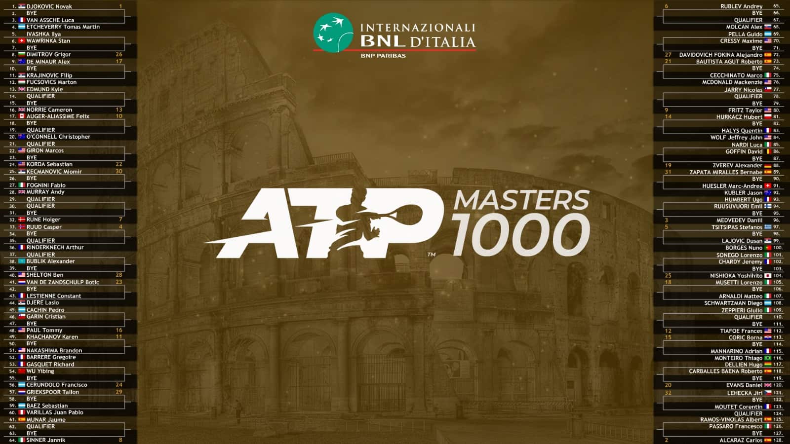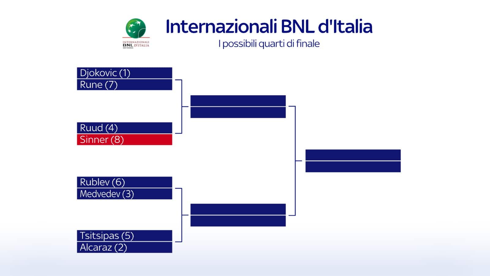 - [8] Sinner BYE (al 2° turno Munar o un qualificato)