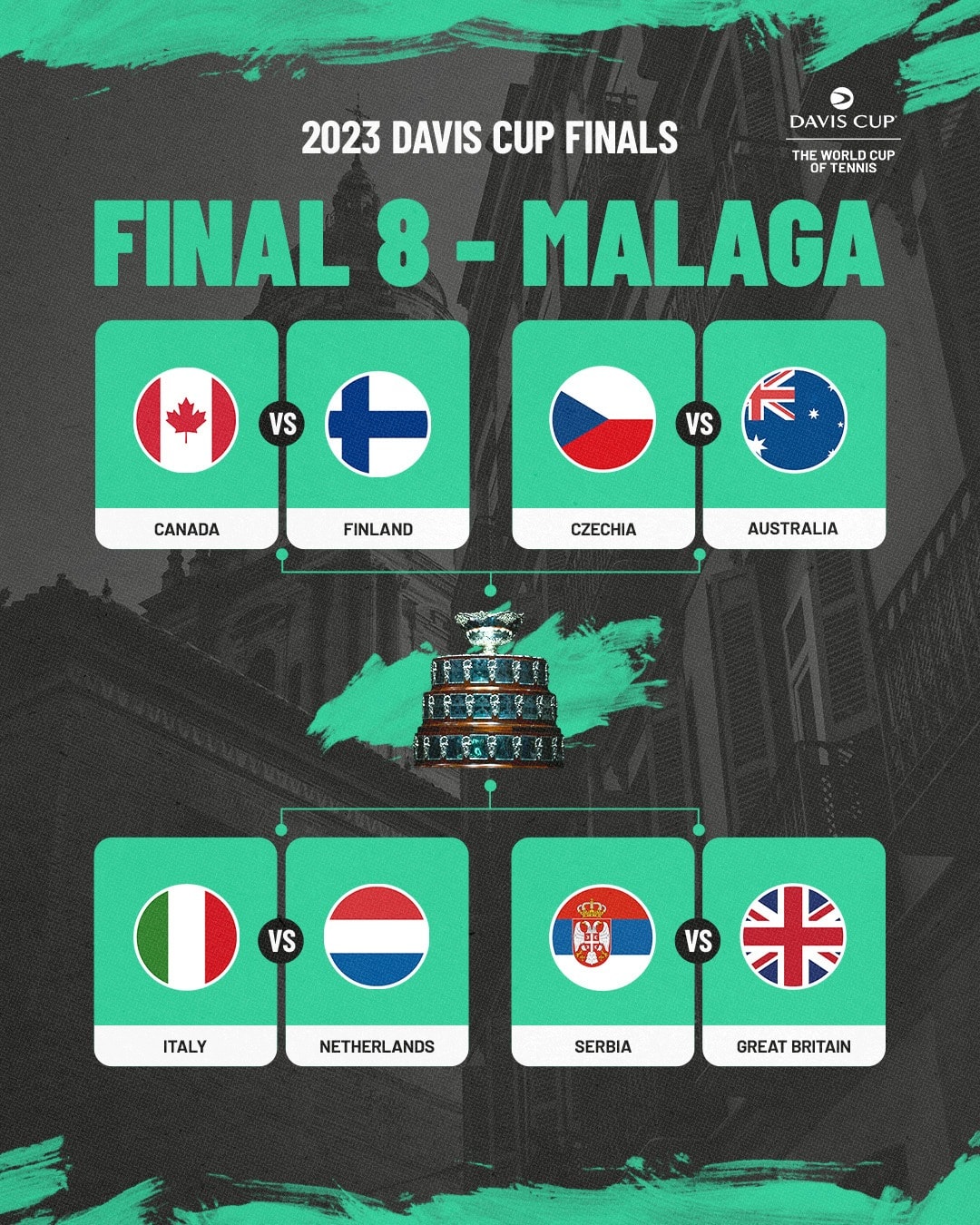 L'Italia affronterà l'Olanda nei quarti di finale della Coppa Davis. Le Final 8 del massimo trofeo per nazioni si svolgeranno al Palacio de Deportes José María Martín Carpena di Malaga, dal 21 al 26 novembre. Gli azzurri, classificati al 2° posto nel gruppo A di Bologna dietro al Canada, pescano dunque la formazione orange, che ha vinto il girone D eliminando le favorite Usa e Croazia. Possibile incrocio in semifinale con la Serbia di Novak Djokovic (che ha le Final 8 nella programmazione di fine anno), chiamata a superare prima la Gran Bretagna di Andy Murray.