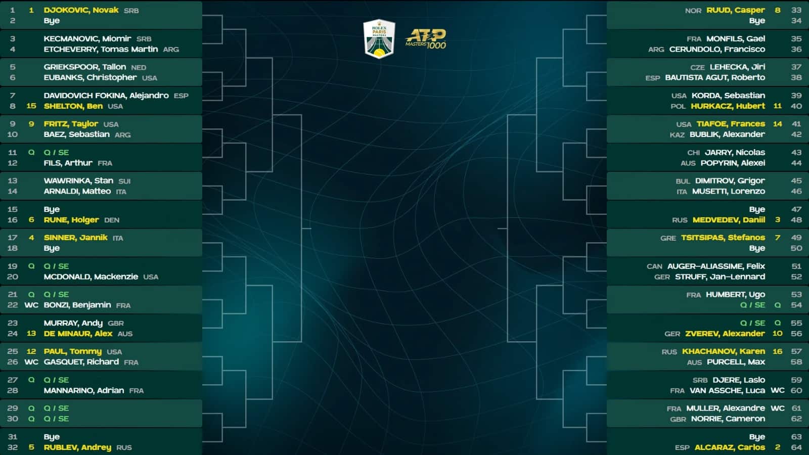ATP Parigi Bercy, gli ipotetici ottavi di finale