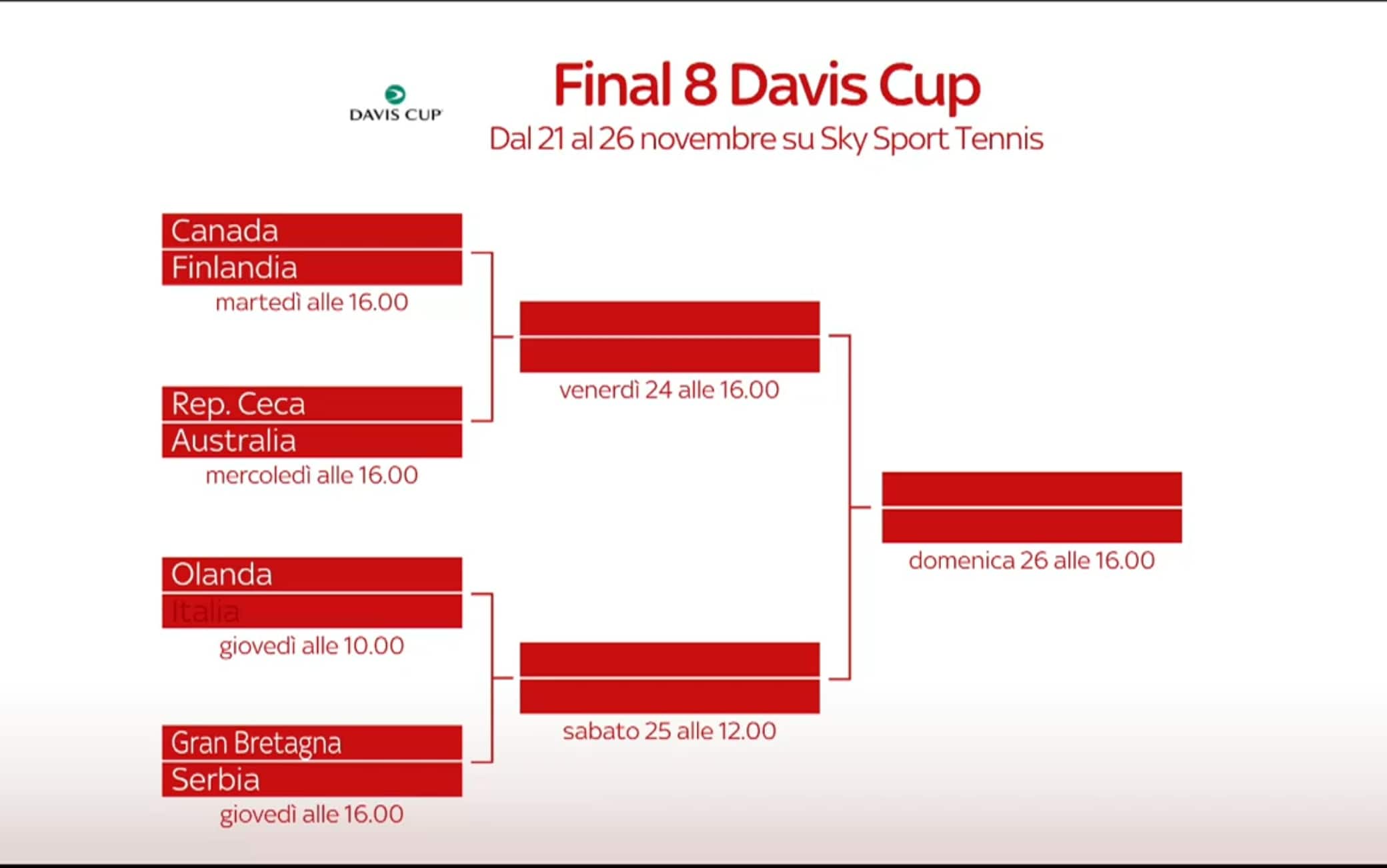 Davis Cup Finals: giovedì Italia-Olanda su Sky