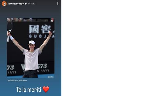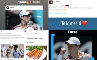 - "Ancora un'impresa, è di nuovo storia! Scritta con un talento dominante e una consapevolezza disarmante. Maestoso Sinner: supera di forza Djokovic e si regala - quinto azzurro di sempre in singolare - il primo atto decisivo di uno Slam, che equivale anche alla prima finale di sempre per il tennis italiano agli Australian Open. Al tuo fianco per continuare a sognare. Grazie, Jannik"