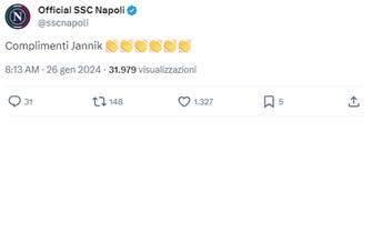 - Non può mancare la squadra del cuore di Jannik che gli fa le congratulazioni: "Che match, che orgoglio
