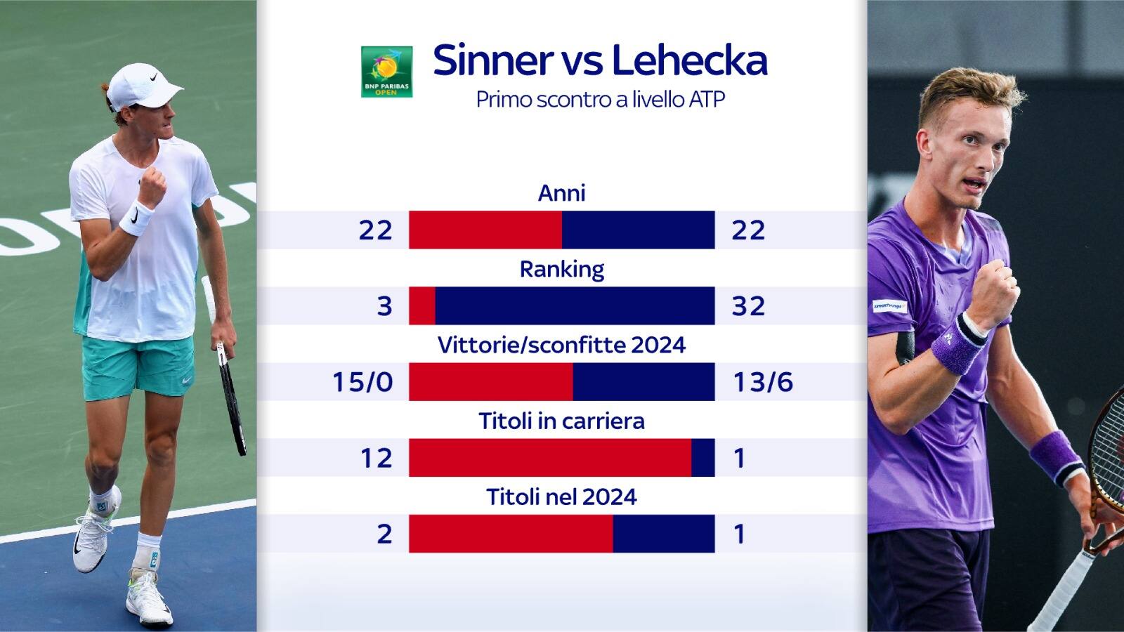 E' la giornata dei quarti di finale per Jannik Sinner, che cerca di incrementare i suoi pazzeschi numeri stagionali, in cui risulta ancora imbattuto e centrare la seconda semifinale consecutiva a Indian Wells. L'italiano n°3 del ranking (ma con nel mirino la seconda piazza di Carlos Alcaraz) affronta il ceco Jiri Lehecka, testa di serie n°32 del seeding. I due non si sono mai affrontati a livello ATP, ma solo in un Challenger a Ostrava nel lontano 2019 con il successo di Jannik. Il campione di Melbourne ha un record di 18 vittorie consecutive (15 nel 2024) e proverà a centrare la terza semifinale dell'anno in altrettanti tornei giocati: gli altri due, ovviamente, li ha portati a casa. Il match, in programma alle ore 19, è in diretta su Sky Sport Tennis e in streaming su NOW.